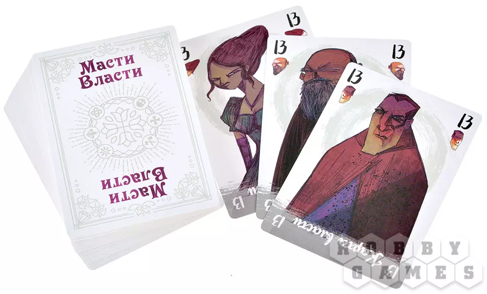 "Масти власти" – это карточная настольная игра, открывающая взгляд на игры со взятками под новым углом! Козыри меняются каждый раунд, а карты с самыми высокими рангами не всегда приносят пользу: да, они позволят вам забрать взятку, но ближе к концу игры могут лишить вас победных очков. Собирайте наборы символов различных гильдий, побеждая своих соперников и забирая у них карты. А если переживаете, что можете получить лишнего, то всегда можно откупиться самоцветами! Играйте, объединившись в команды, или соревнуйтесь каждый сам за себя. Приложите все усилия, чтобы завоевать благосклонность гильдий.