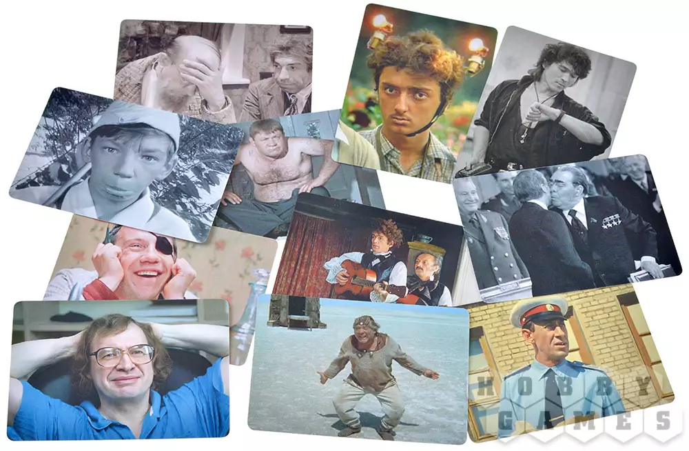 Советский и российский кинематограф прошлого века породил множество знаковых образов и фраз, что разошлись на цитаты. Можно сказать, что они были одними из первых мемов, что хорошо известны как старшему поколению, так и младшему. В данном наборе вы найдёте множество кадров из самых разных фильмов – а также многие другие образы минувшей эпохи, с помощью которых сможете проверить находчивость и остроумие ваших друзей!