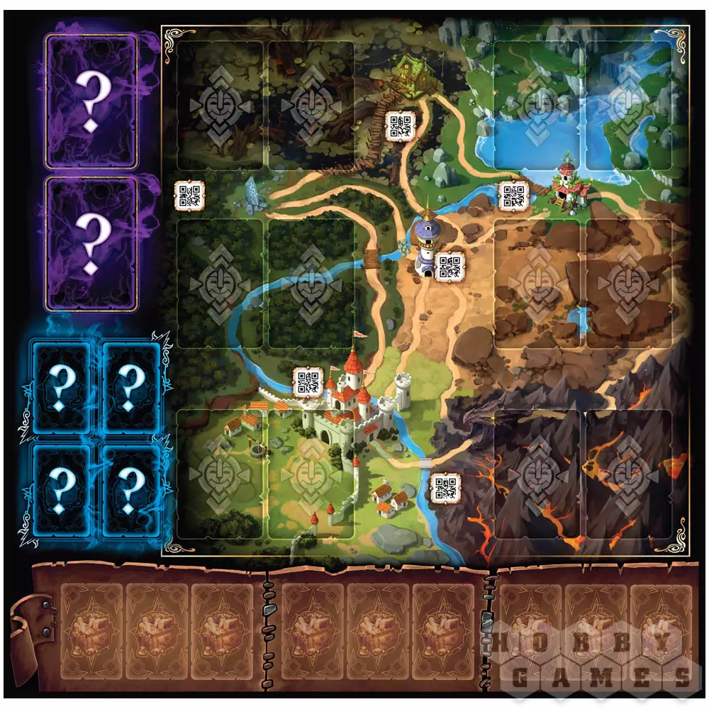 Разместите игровое поле в середине стола, а карты персонажей и предметов разложите рядом согласно правилам. Волшебство начнётся, как только вы запустите специальное приложение для игры. В нём вы можете выбрать наиболее приглянувшийся сценарий. Для начала было бы неплохо понять суть игры, и в этом вам поможет "Магическое обучение".