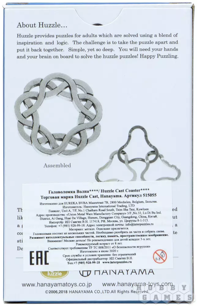 Линейка Huzzle Cast от японской компании Hanayama – это качественные металлические головоломки высокого уровня сложности, которые могут послужить отличным подарком как увлечённому фанату головоломок, так и просто человеку с пытливым умом. Чтобы решить головоломку, вам надо сначала разобрать её, а потом собрать. Причудливые формы и конструкции тщательно продуманы профессиональными создателями головоломок из стран всего мира и опираются на математические расчёты и законы физики.