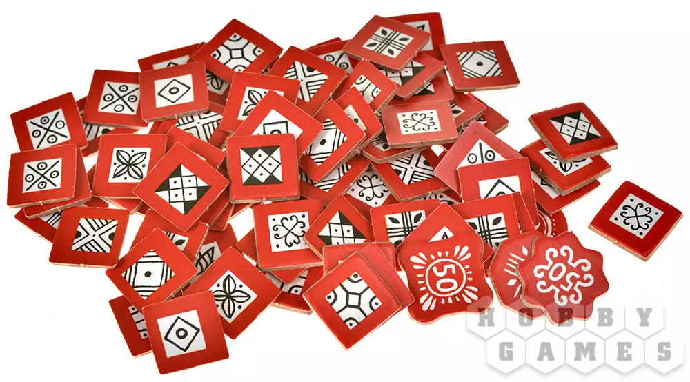 Каждый жетон на своём орнаменте, лежащий светлой стороной вверх