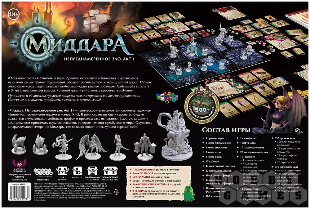 "Миддара: Непреднамеренное зло. Акт 1" – это масштабная кооперативная кампания, которая переносит лучшие черты японских RPG на ваш стол. Вам и вашим друзьям предстоит стать странствующими героями, чья судьба переплетается с судьбой принцессы Найтингейл.