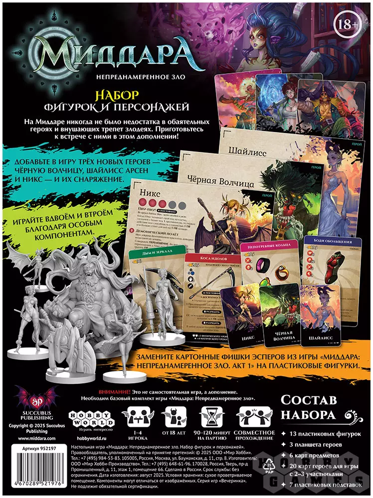 Данное дополнение значительно расширяет возможности базовой игры "Миддара: Непреднамеренное зло. Акт 1", делая её ещё богаче и зрелищнее. Вы получите трёх полностью готовых к игре героев с их уникальным снаряжением, что позволит вам опробовать совершенно новые тактические комбинации и стили игры. Встречайте безжалостную Чёрную Волчицу, коварную Шайлисс Арсен и загадочную Никс – они уже готовы ворваться в самую гущу событий!