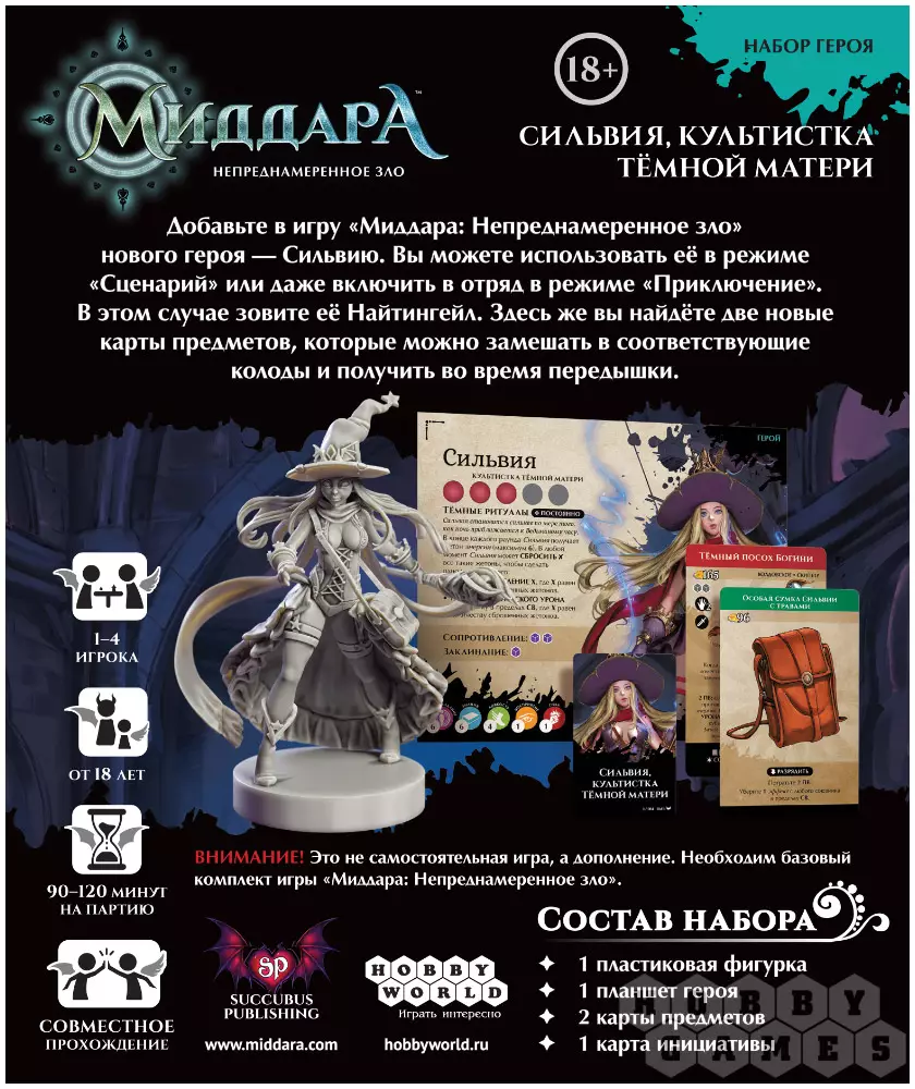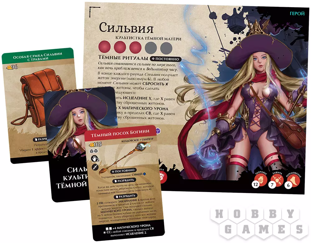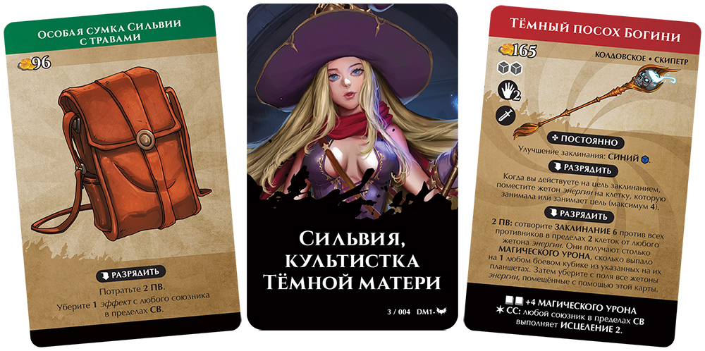 Помимо самой Сильвии, в набор также входят две совершенно новые карты предметов. Замешайте их ко всем остальным картам соответствующих типов и получите во время передышки!