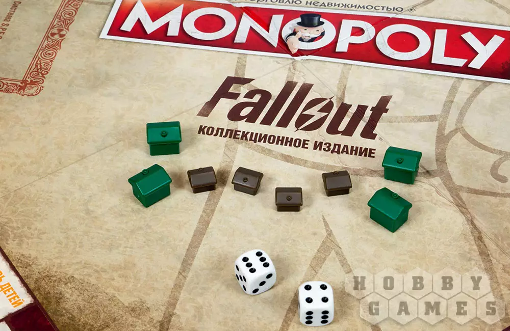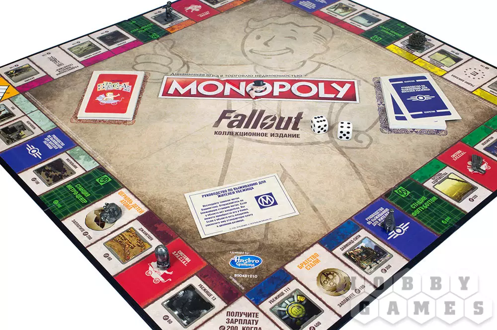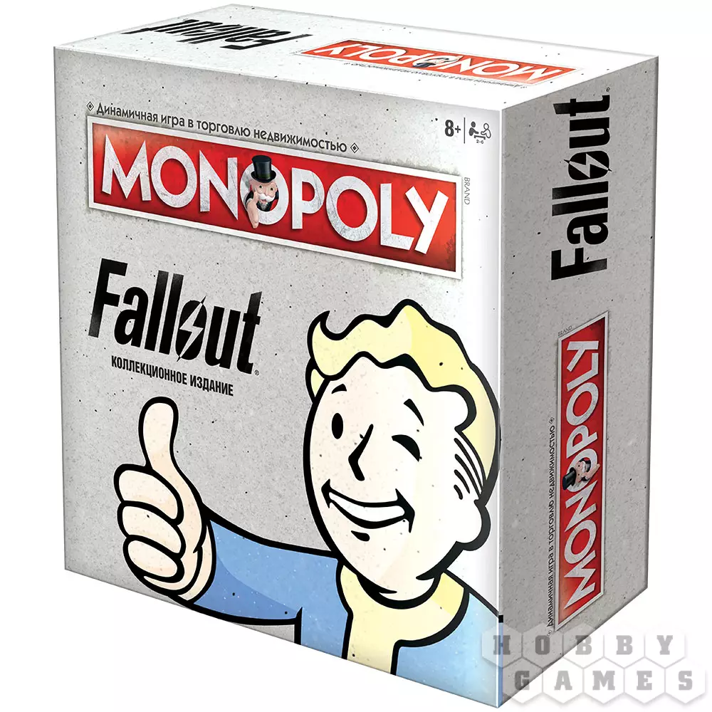 "Монополия. Fallout" – это свежая версия великолепной экономической стратегии для всей семьи. В качестве сеттинга был выбран постапокалиптический мир Fallout – культовой серии ролевых видеоигр, действие которой разворачивается недалёком будущем после мировой ядерной войны. Эта игра доказывает, что экономика существует всегда, даже на фоне конца света и полного упадка человечества!