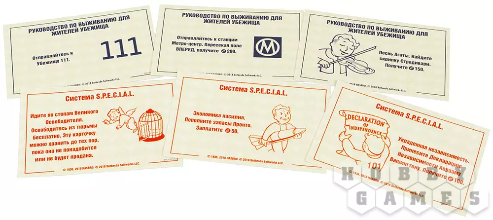 Карточки "Система S.P.E.C.I.A.L" и "Руководство по выживанию для жителей Убежища" заменяют карточки Шанса и Казны