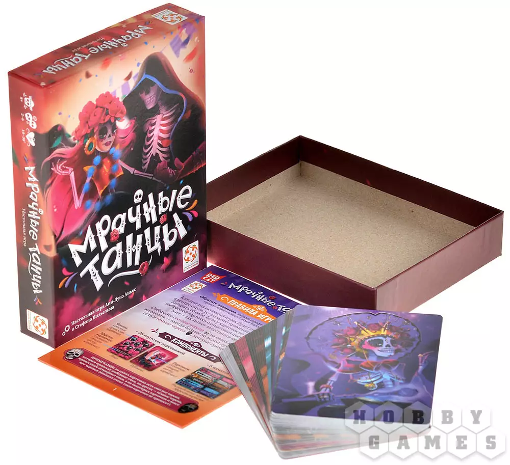 "Мрачные танцы" – настольная игра, в которой вы станете участником таинственного празднества, где каждая карта не просто фигура, а живой персонаж со своей историей и силой. В основе игры лежит управление картами, выложенными в круг, каждая из которых имеет уникальный цвет и эффект: вы можете копировать способности, обмениваться картами, красть их, или даже устранять их из игры. Особое внимание заслуживают иллюстрации, которые погружают в мрачно-сказочную эстетику праздника, а качество компонентов гарантирует удовольствие от каждой партии.