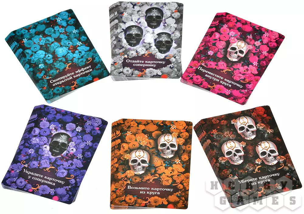 Перед началом игры каждый игрок берёт себе памятку, которая поможет ориентироваться в эффектах карт. Затем все карты тщательно перемешиваются и выкладываются на стол рубашкой вверх в виде круга – важно, чтобы каждая карточка оставалась видимой и доступной для всех участников.