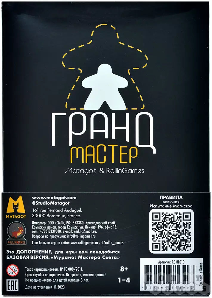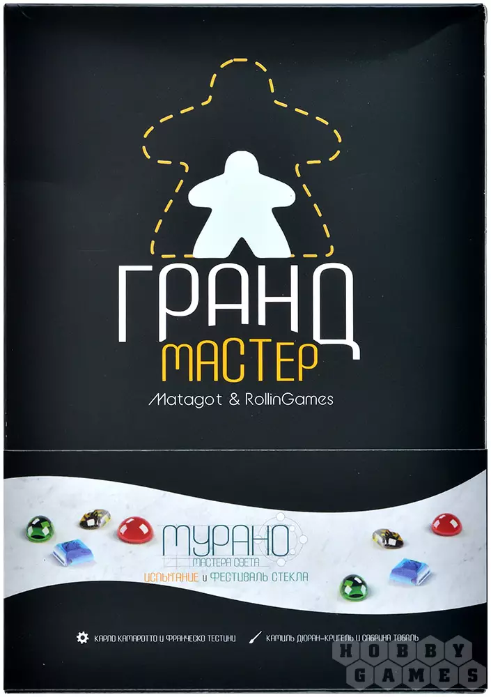 "Грандмастер" – это не просто дополнительные карточки для базовой игры "Мурано: Мастера Света", а целый сборник новых испытаний для опытных стеклодувов. В комплекте вы найдёте не только мешок для хранения осколков и новые карты, но и новые модули, которые позволят вам сыграть по-новому. В режиме "Одиночное испытание" вы бросите вызов самому себе, модуль "Фестиваль стекла" вносить изменение в стандартное получения карт творений, а "Испытание магистра" станет испытанием для самых настоящих экспертов благодаря новому условию окончания игры и правилу, ограничивающему получение лир.