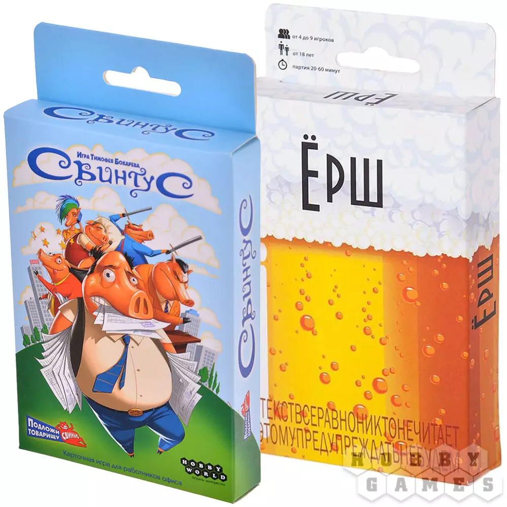 Набор "Ещё по одной" включает в себя игры "Свинтус" и "Ёрш" со скидкой 15%.