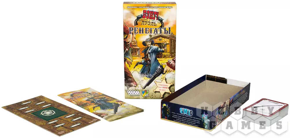 Набор включает в себя игру "Бэнг! Дуэль" и дополнение "Бэнг! Дуэль: Ренегаты" со скидкой 15%.