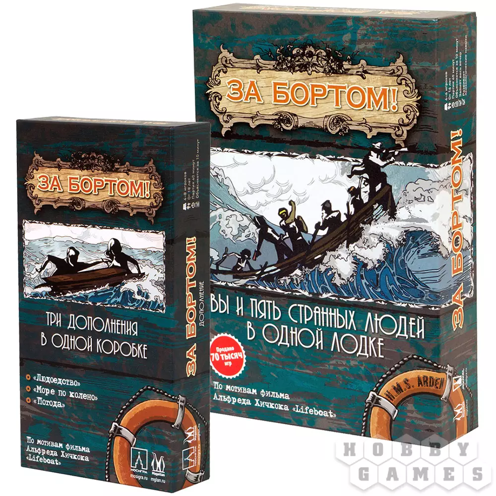 Набор "Море по колено" включает в себя игры "За бортом" и "За бортом! Три дополнения в одной коробке" со скидкой 15%.