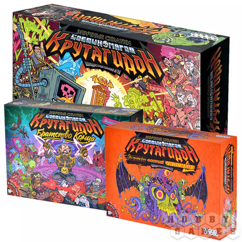 Набор включает в себя игру "Эпичные схватки боевых магов: Крутагидон", дополнение "Эпичные схватки боевых магов: Крутагидон. Братство конца" и дополнение "Эпичные схватки боевых магов: Крутагидон. Экстремально острый чипсихоз" со скидкой 15%.