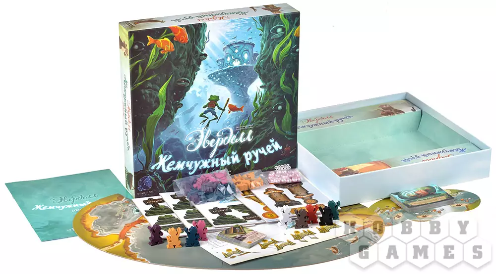 Дополнение "Жемчужный ручей" не только добавляет в игру новые карты, фишки жемчужин и новых обитателей – лягушек и выдр, но и повышает сложность игры в целом.