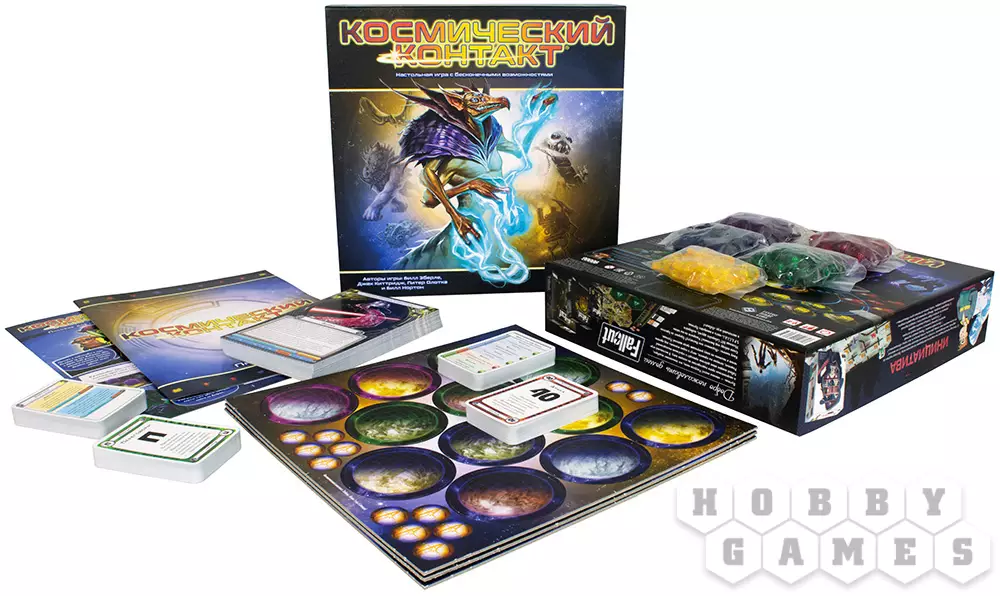 Космический доминион" добавляет в "Космический контакт" ещё больше разнообразия за счёт 30 новых рас. Вы только вдумайтесь: 30 рас! Вариативность и реиграбельность взлетает до небес. Безусловно это ещё не всё – в коробке вас ждёт новая колода наград, которая включает в себя карты атаки с переменным значением, карты отступления и карты устрашения. А ещё маркеры космических кораблей, с помощью которых вы сможете не только сыграть в новые режимы, но даже придумать свой собственный! Но самое примечательно в "Космическом доминионе" то, что в основу его разработки легли идеи фанатов "Космического контакта". Так что, если вам понравилась базовая игра, контент из этого дополнения точно придётся вам по душе.