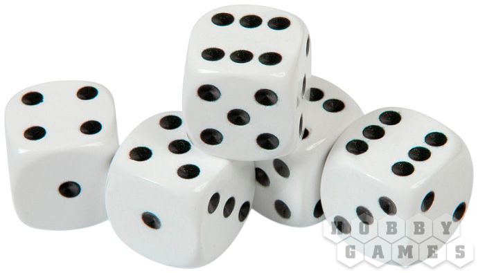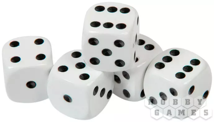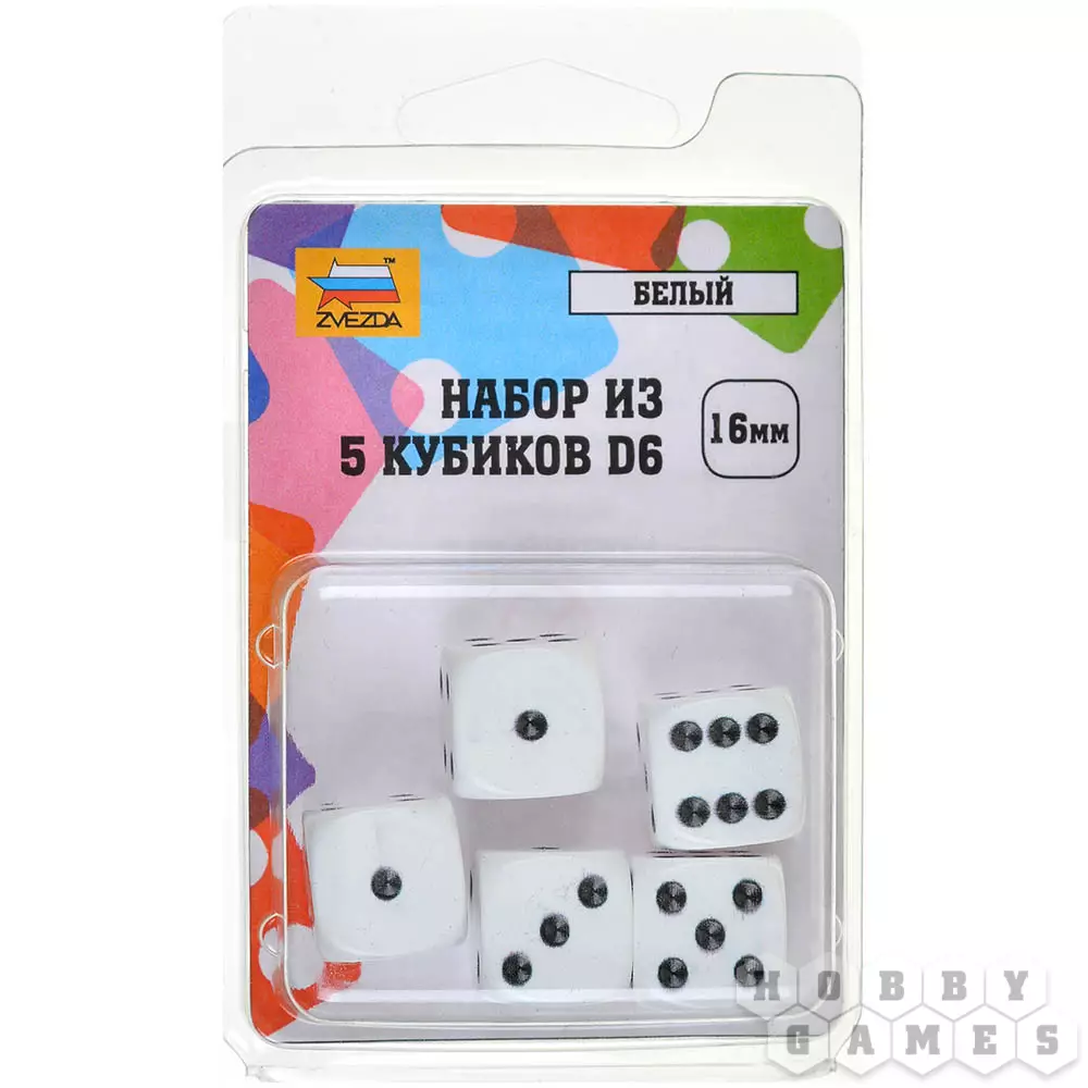 Набор кубиков D6 Zvezda, 5 шт. (16 мм, белые)