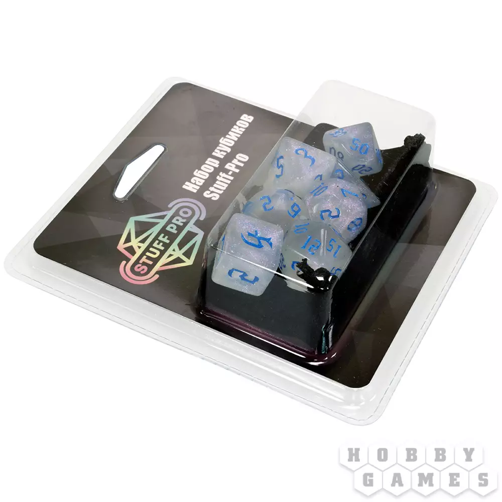 Набор кубиков Stuff-Pro для ролевых игр (жемчужный с синими цифрами)
