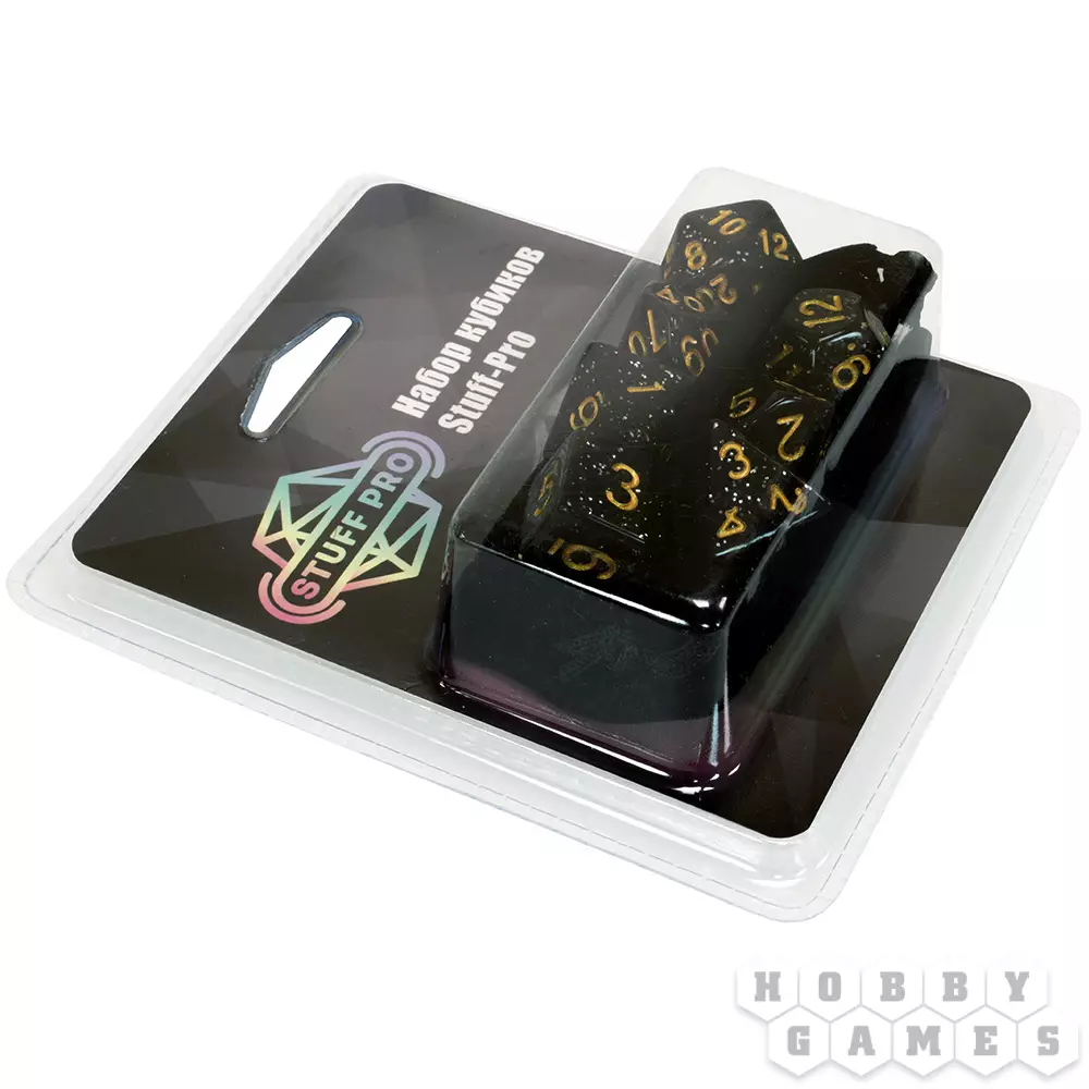 Наборы кубиков для ролевых игр решают проблему покупки необходимых дайсов. В наборе содержатся семь кубиков: D4, D6, D8, D10, D10%, D12 и D20. Поставляются кубики в комплекте с бархатным мешочком для хранения, который также удобно брать с собой на игру, ведь он легко помещается в карман.