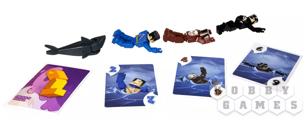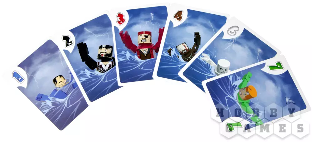 Заплыв – в эту фазу игроки сравнивают значение на выложенных картах и перемещают своих роботов-пиратов