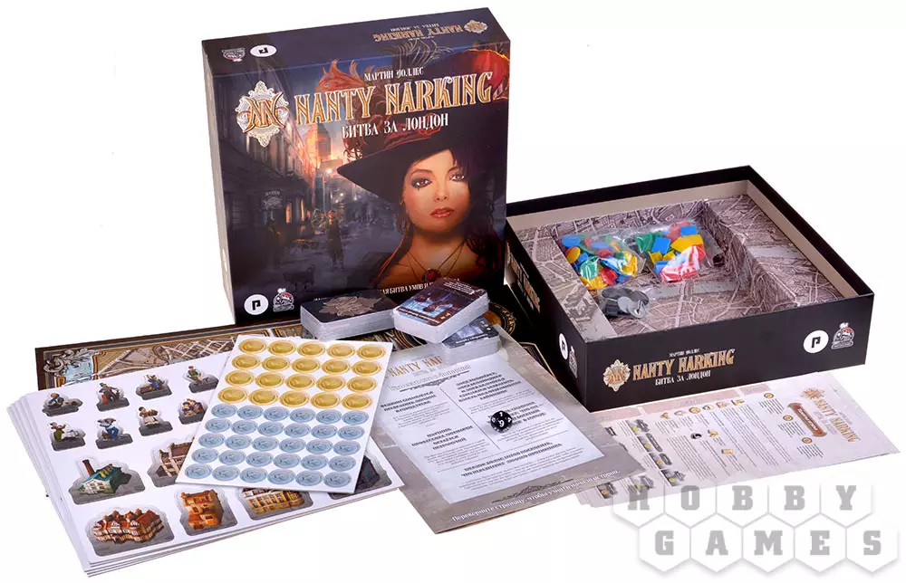 "Nanty Narking. Битва за Лондон" – это соревновательная настольная игра, в которой игроки, управляя неординарными личностями из британской столицы, будут стремиться навести в городе свой порядок. Это ремейк классической настольной игры "Плоский мир: Анк-Морпорк", что не только унаследовал от оригинала все механики и карты, но и обзавёлся дополнительным контентом.