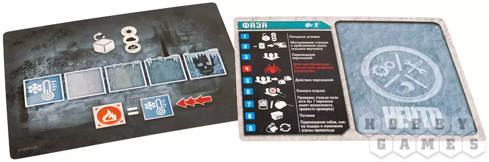 В начале игры нужно распределить роли, раздав планшеты персонажей случайно или выбрав их по своему вкусу. После этого они узнают, кем будут играть – пришельцем или обычным человеком. Как и в фильме, заражение начинается с собак, и пришельцем станет тот, кому достанется жетон заражённого пса. Свою роль нужно держать в секрете и не обсуждать с другими игроками! После этого вы начинаете играть. Игровой процесс состоит из раундов, в каждой из которых может быть до 8 фаз. Фазы разыгрываются строго по порядку, от первой, фазы погодных условий, до восьмой, перемещения собак и смены лидера. Фаз может быть меньше восьми, это зависит от конкретной игровой ситуации. Игрокам нужно будет следить за своими потребностями: едой, сном и другими, посещая разные локации станции и заботясь об их работоспособности. Это усложняет процесс поимки пришельца, ведь он может как причинять остальным вред, так и притворяться обычным членом экспедиции.