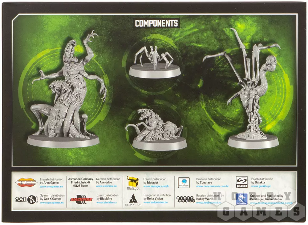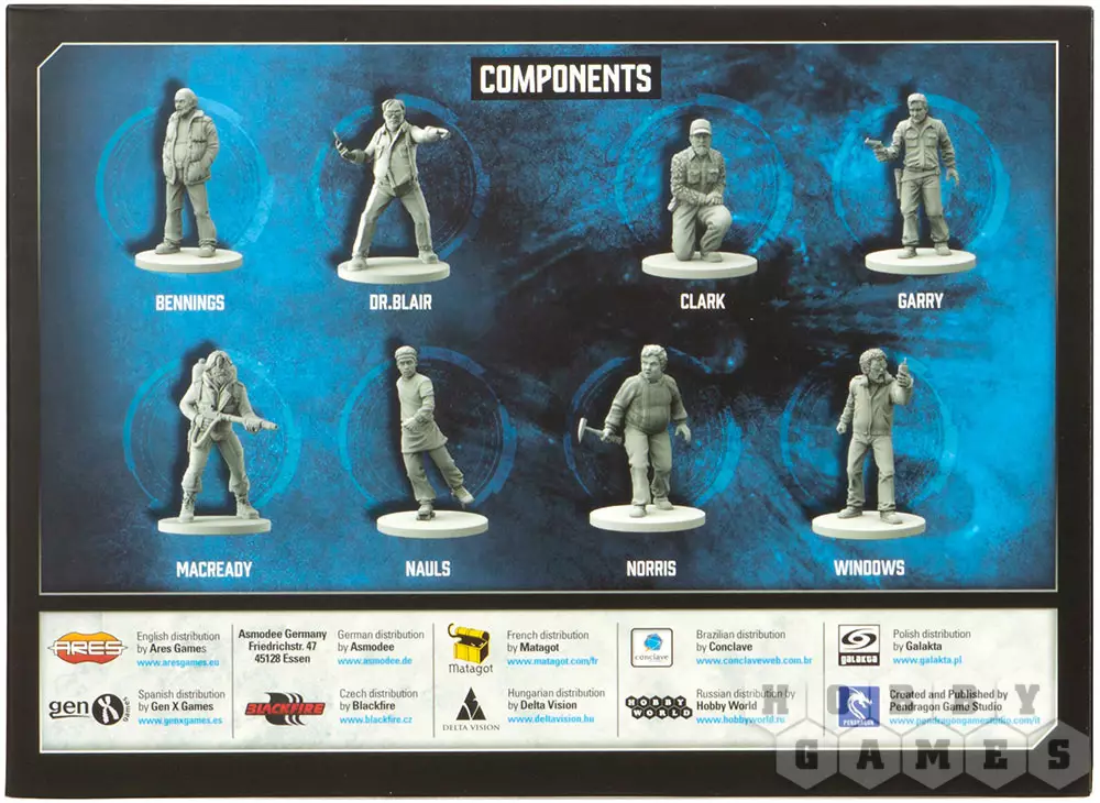 Комплект состоит из двух наборов миниатюр для игры "Нечто" – Human Miniatures Set и Alien Miniatures Set. В первом вы найдёте восемь высокодетализированных пластиковых миниатюр персонажей, которыми сможете заменить фишки персонажей. Миниатюры созданы на основе классических образов из фильма и изображают главных героев игры, например, Макреди и доктора Блэра. Второй набор, с пришельцами, состоит из четырёх моделей, каждая из которых – одна из стадий развития Нечто. Используйте миниатюры из этих наборов, чтобы ваши игры стали ещё красивее и интереснее.