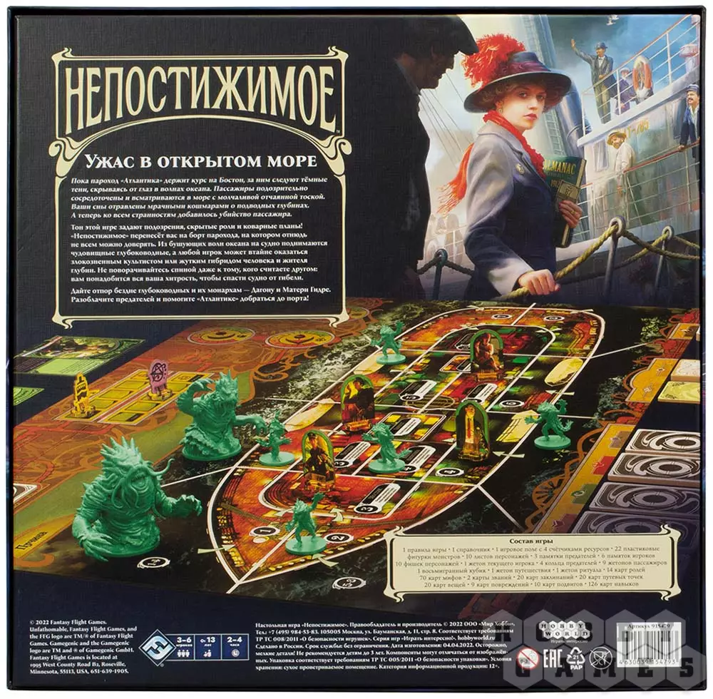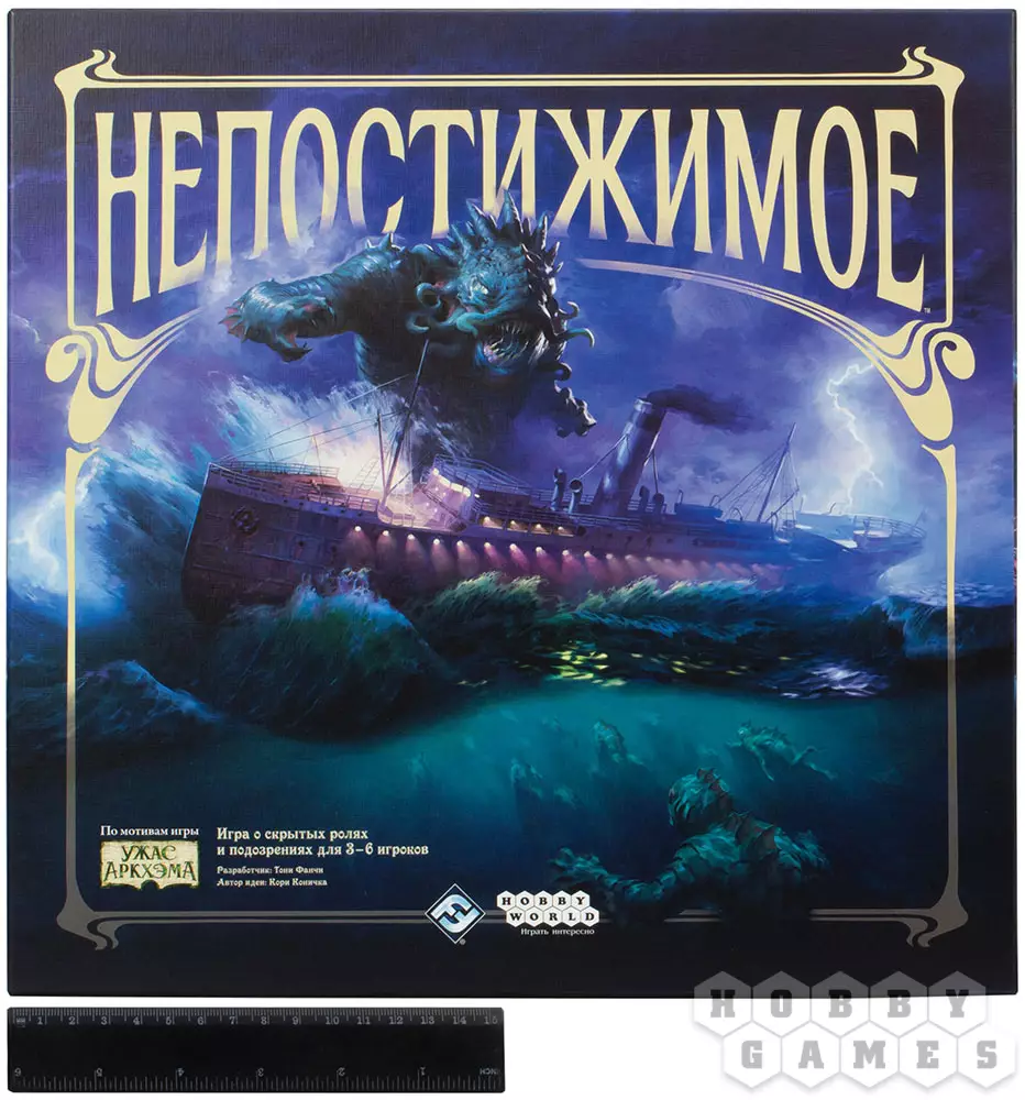 "Непостижимое" – это настольная игра, созданная по мотивам лавкрафтовских мифов в стилистике "Ужаса Аркхэма" и на основе легендарной Battlestar Galactica. В этой командной игре со скрытыми ролями пассажиры противостоят лезущим из моря чудовищам, которых возглавляют Отец Дагон и Мать Гидра, одновременно вычисляя притаившихся на борту культистов-гибридов.
