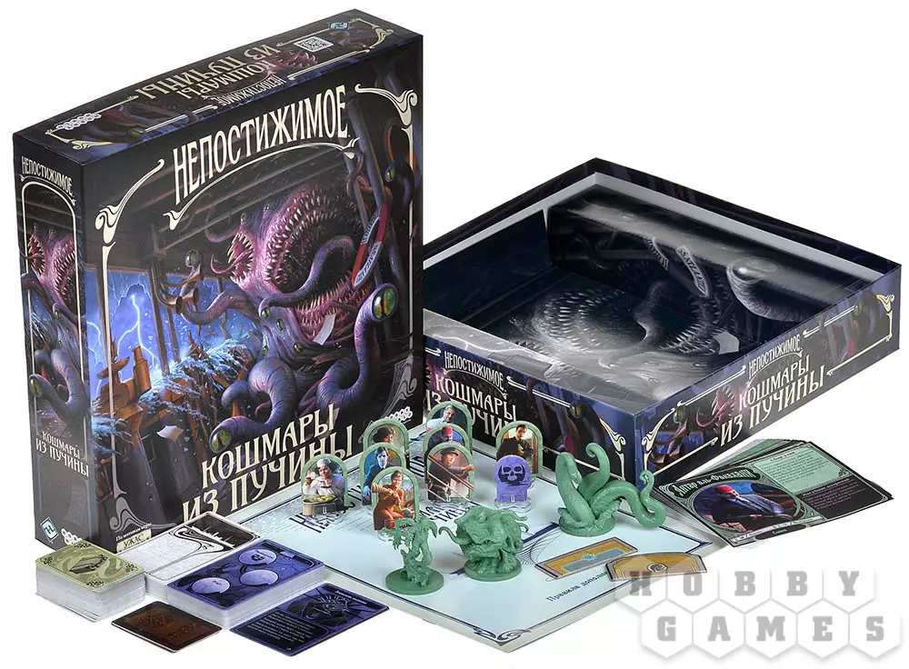 "Непостижимое" – это настольная игра, созданная по мотивам лавкрафтовских мифов в стилистике "Ужаса Аркхэма" и на основе легендарной Battlestar Galactica. В этой командной игре со скрытыми ролями пассажиры противостоят лезущим из моря чудовищам, которых возглавляют Отец Дагон и Мать Гидра, одновременно вычисляя притаившихся на борту культистов-гибридов.