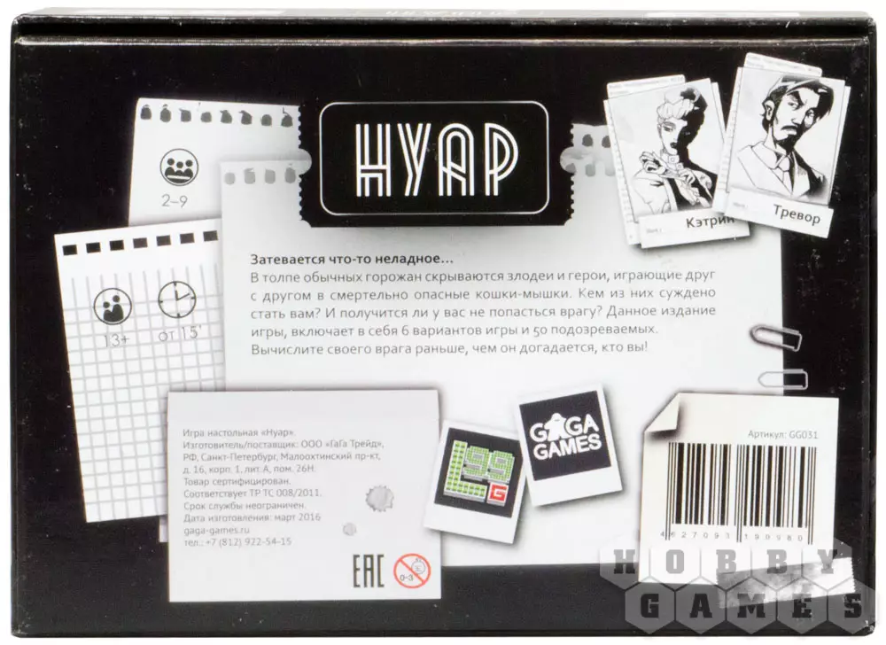 Миляев01.09.2021 01:38Простая, но в то же время годная игра. Покупал для моментов, когда хочется провести время за настолкой, но слишком мало времени для чего-то долгого. Нуар включает в себя сразу несколько игр, рассчитанных на разное время партии и количество человек. Обычно партии длятся не более 30 минут, а на освоение правил конкретной игры всего минут 5 уходит, так что хорошо подойдёт для игры в компании, где есть люди не интересующиеся миром настольных игр -