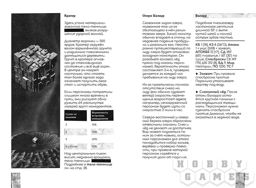 "Оно упало из глубокого космоса" – это настольная ролевая игра, в которой вы отправитесь в приключение по загадочным заснеженным территориям. Вашим ориентиром станет след упавшего аэролита – ценнейшего материала, из которого создаются магические оружие и броня. Но одновременно с вами к этой зимней вылазке присоединятся и другие, ведомые тем же желанием – заполучить эту редкость. Удастся ли вам первым добраться до места падения космического металла?