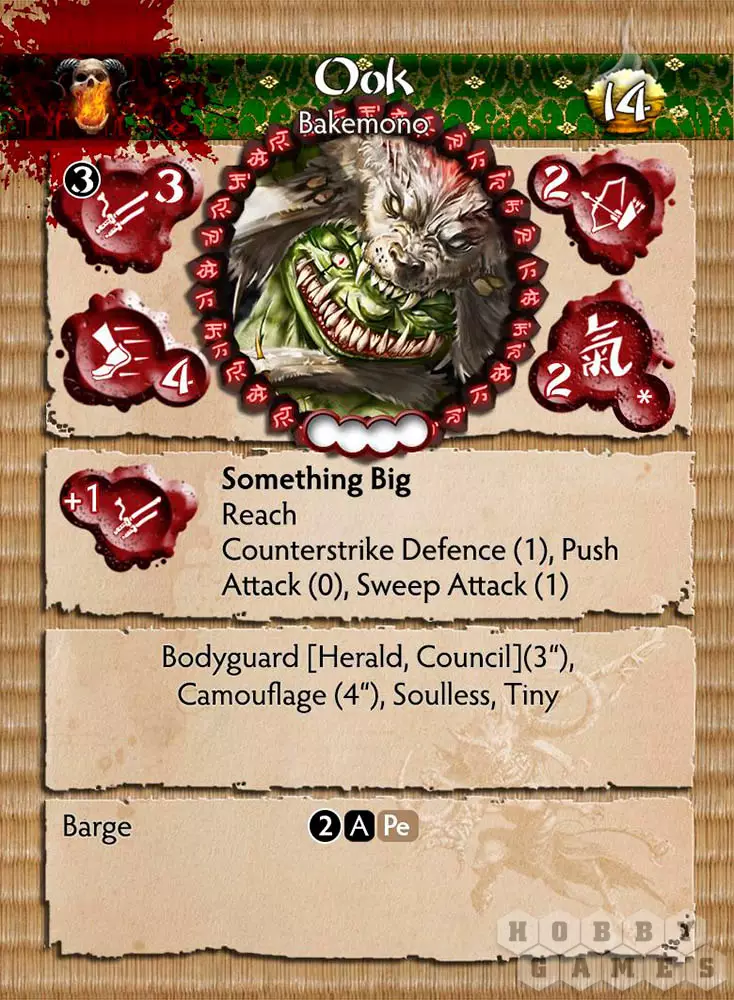 Телохранители Bakemono общеизвестно хитры и ненадежны, в отличие от Ook. Ook – хранитель Shadow Council. Он подарил им свою волю и душу, теперь навечно прикован к сумеречному делу Bakemono. Небольшой рост помогает чудовищу в перемещениях. Ook может лучше всего защитить своих подопечных, где бы они ни находились. Даже со смертью долг Ook не заканчивается, поскольку Shadow Council и их глашатаи могут вернуть его из загробного мира, чтобы он продолжил сражаться на их стороне. Его душа принадлежит им, и они намерены использовать её столько раз, сколько смогут.
