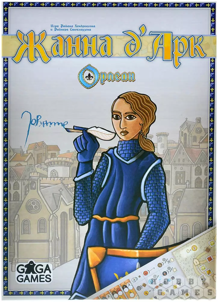 "Жанна д'Арк" – это упрощённая версия настольной игры "Орлеан" в совершенно ином жанре: всё, что происходит в игре, вы записываете на специальном листе. В остальном же это всё та же крепкая стратегия, что и её старший брат (разве что теперь в игре нет механики "построения мешка"). Вам по-прежнему предстоит строить наиболее выгодную стратегию действий и конкурировать с оппонентами за выгодные жетоны. А если захотите, можете вступить в схватку с самой Жанной д'Арк в режиме игры на одного.
