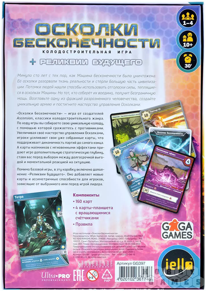В коробке вы найдёте также дополнение к игре “Реликвии Будущего”, оно обещает добавить вашим партиям глубины и разнообразия. Постройте свою лучшую колоду и не оставьте шансов соперникам!