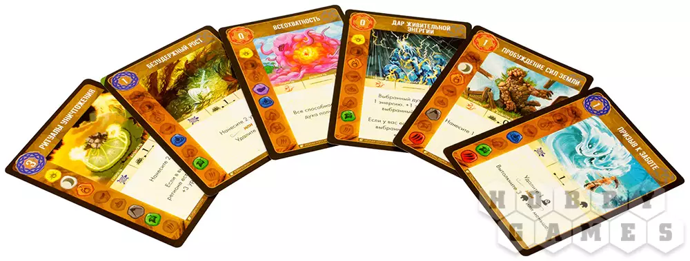 - Фаза духов – в эту фазу духи могут расти, выполняя ряд действий; могут получать энергию, а также тратить её на розыгрыш карт способностей