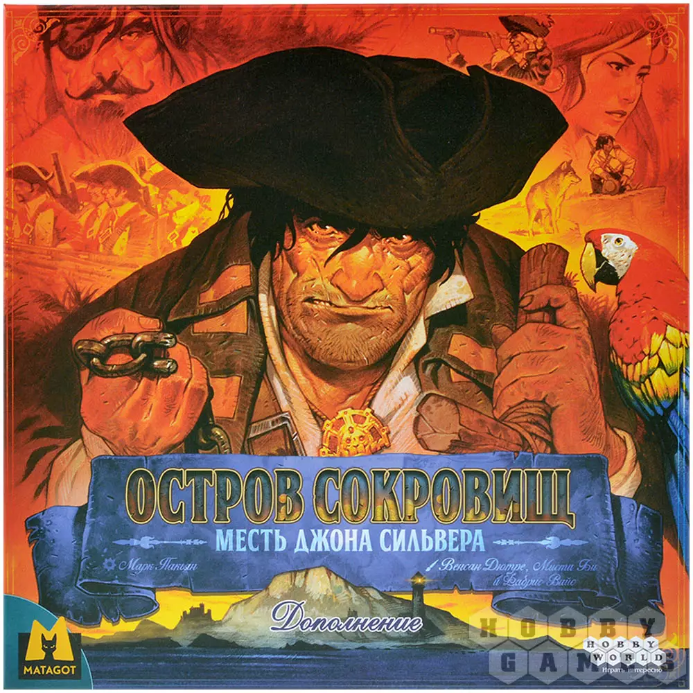 "Месть Джона Сильвера" – это долгожданное дополнение для "Острова сокровищ: Тайна Джона Сильвера". Оно включает в себя 2 новых модуля, которые можно добавлять в игру как по отдельности, так и оба сразу. Модуль "Новые острова", как понятно из названия, отправит вас на поиски сокровищ по двум новым картам: обновлённая карта из базовой игры и карта острова Мести. А вместе и с новыми картами в игру добавляются и 11 новых подсказок.