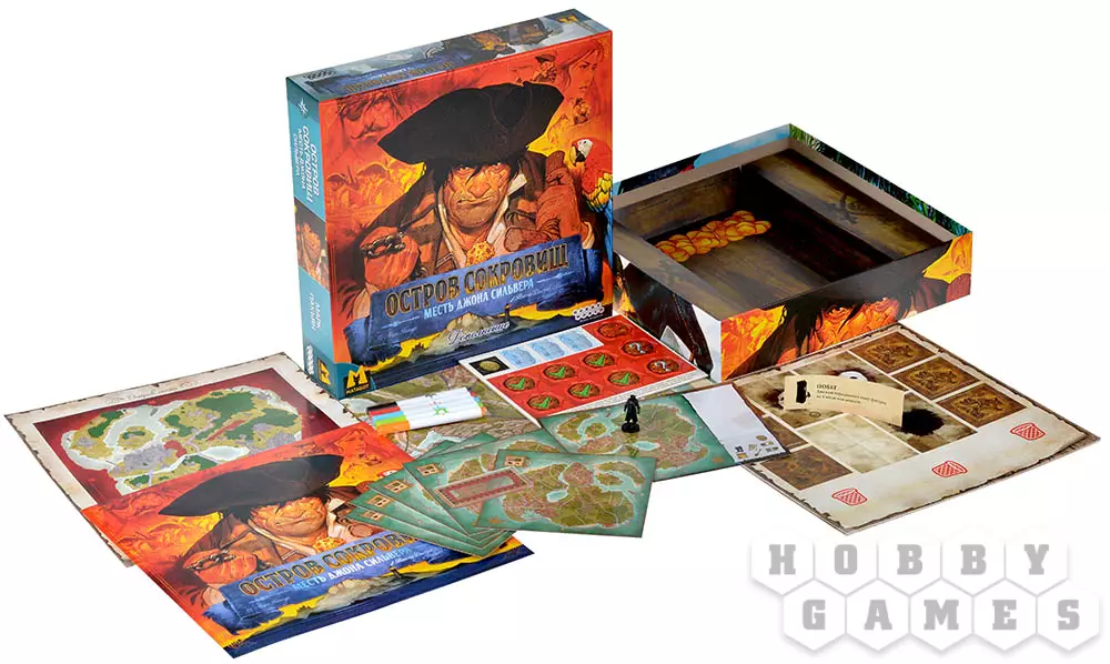 "Остров сокровищ: Тайна Джона Сильвера" – это остросюжетная настольная игра про поиски сокровищ на необитаемом острове, построенная на блефе и взаимодействии с картой.