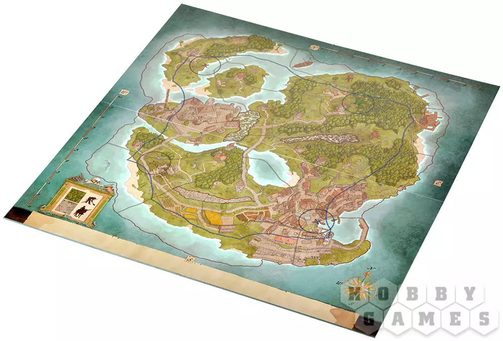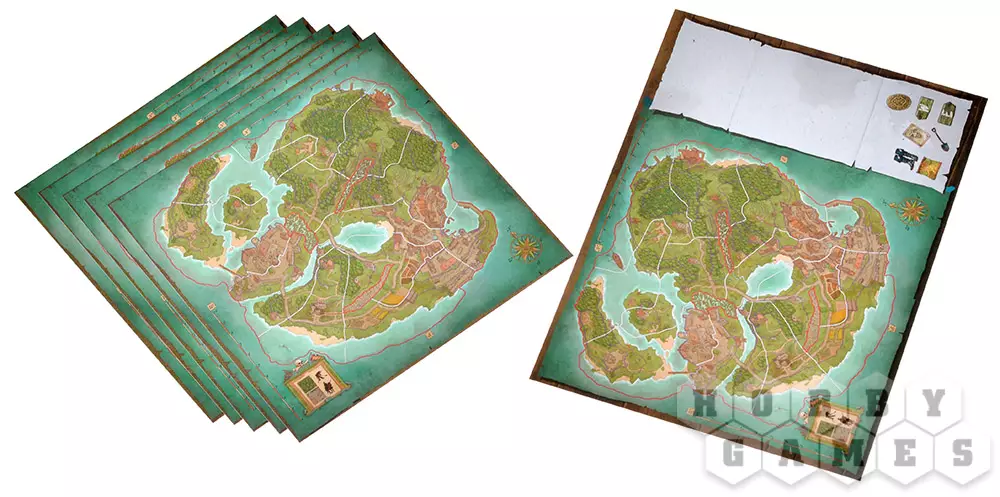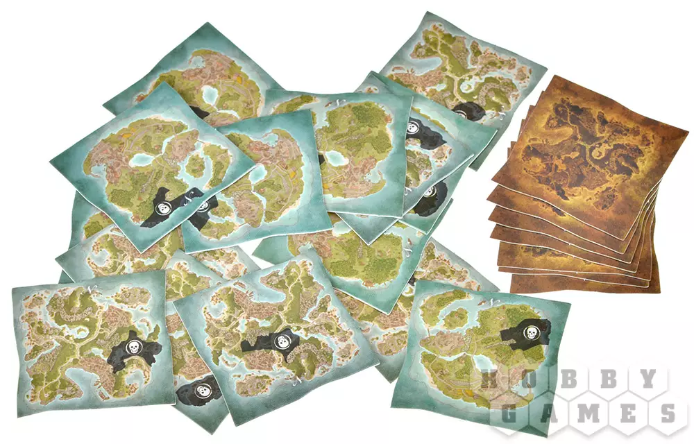 Игровая комплектация чрезвычайно красива и антуражна – внутри вы найдёте красивые ширмы для игроков, прекрасную двухстороннюю карту острова, сундучок, специальные линейки, маркеры, циркуль и многое-многое другое! Ваше путешествие будет по-настоящему ярким и незабываемым!
