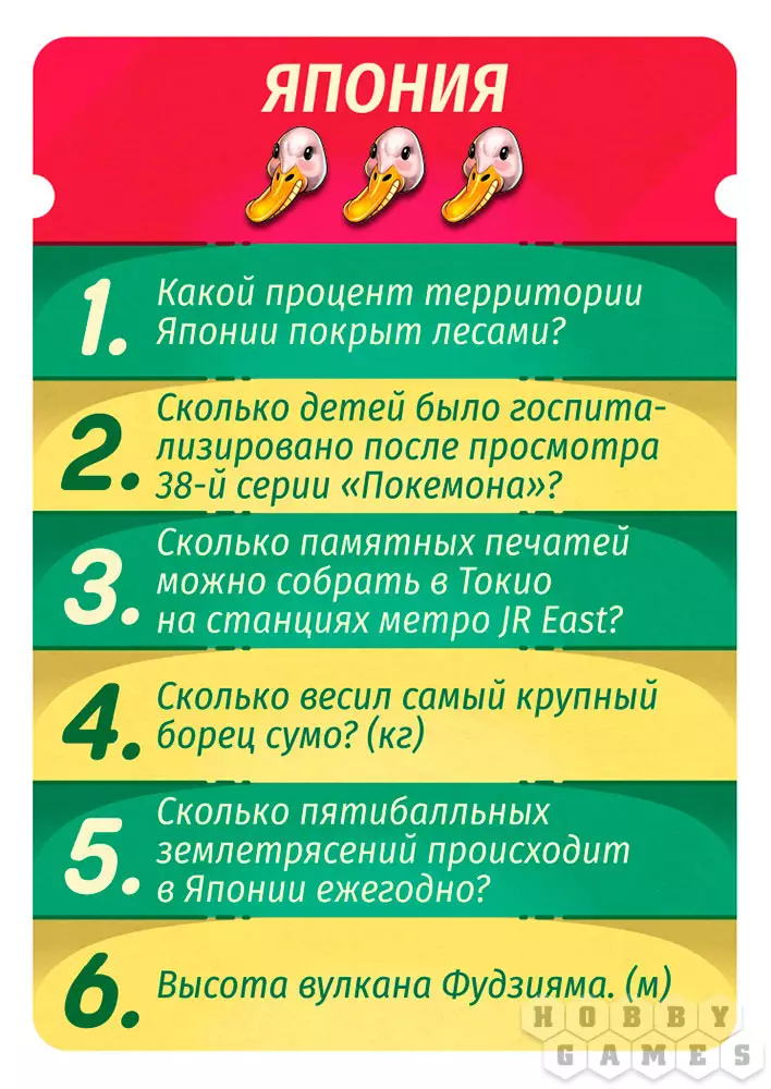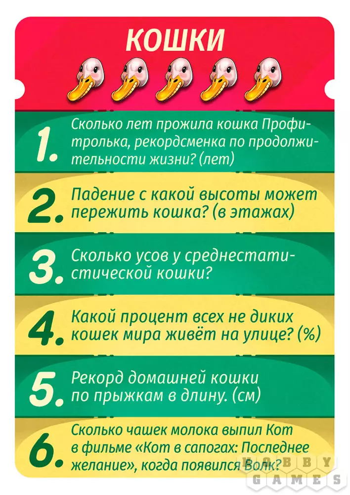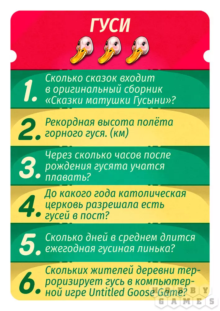 Правила здесь очень просты: один из участников берёт карту (которые, кстати, разделены по темам) из колоды и зачитывает один из вопросов. Ответом на такой вопрос будет число, в этом и есть основная фишка игрового процесса. Итак, первый игрок пытается ответить, но таким образом, чтобы его число не превышало правильный ответ. Следующему игроку будет немного сложнее, ведь он должен ответить числом, которое будет больше предыдущего. И так ход передаётся до тех пор, пока один из игроков не захочет проверить отвечающего: а не перегнул ли он палку, назвав число больше правильного ответа? Если это действительно так, то тот, кого подловили на ответе, получает штрафные очки с карты вопросов.