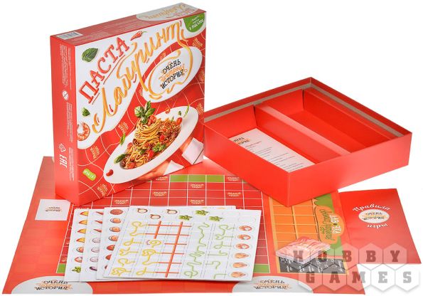 Чтобы преуспеть в этом непростом деле, игроки выстраивают на поле собственную непрерывную макаронину, собирая по пути необходимые ингредиенты. Найденные продукты можно сразу добавлять в пасту или обменивать в лавке на то, что нужнее в данный момент. А особые жетоны добавят остроты – они дают преимущества и помогают справиться с заданиями быстрее соперников.