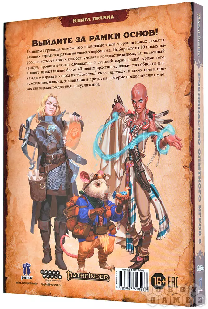 "Руководство опытного игрока" для второй редакции НРИ Pathfinder – это книга, которая позволит вам расширить границы возможного! В ней вас ждёт не только большое количество информации о новых возможностях развития, но и другие, ещё неизведанные пути становления персонажа. 10 новых народов и 4 дополнительных класса дадут вам ещё большую свободу при создании персонажа. Всегда хотели быть ведьмой? Пожалуйста! Мечтали примерить на себя роль оракула? Такое теперь тоже можно!