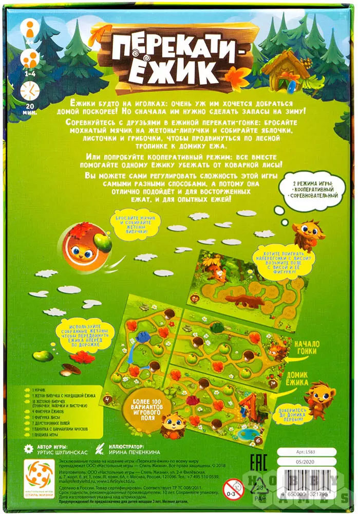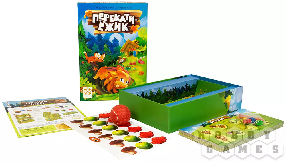 "Перекати-ёжик" – это быстрая и весёлая настольная игра для совместного семейного времяпровождения, привлекающая необычностью игровых компонентов. Так, например, главный герой ёжик – это мохнатый мячик, который в прямом смысле нужно катить, пытаясь собрать на него жетоны-липучки.
