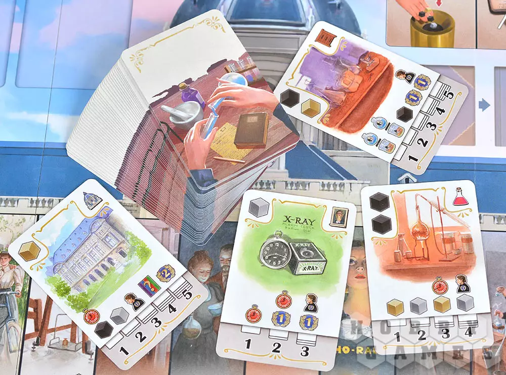 После исследования начинается эксперимент – свободная фаза, в которой можно покупать карточки действий, открывающие новые возможности, преобразовывать ресурсы, активировать жетоны экспериментов, повышающие лимит сбора или хранения ресурсов, а также выполнять личную цель. Здесь вы выстраиваете долгосрочную стратегию и получаете ключевые преимущества.