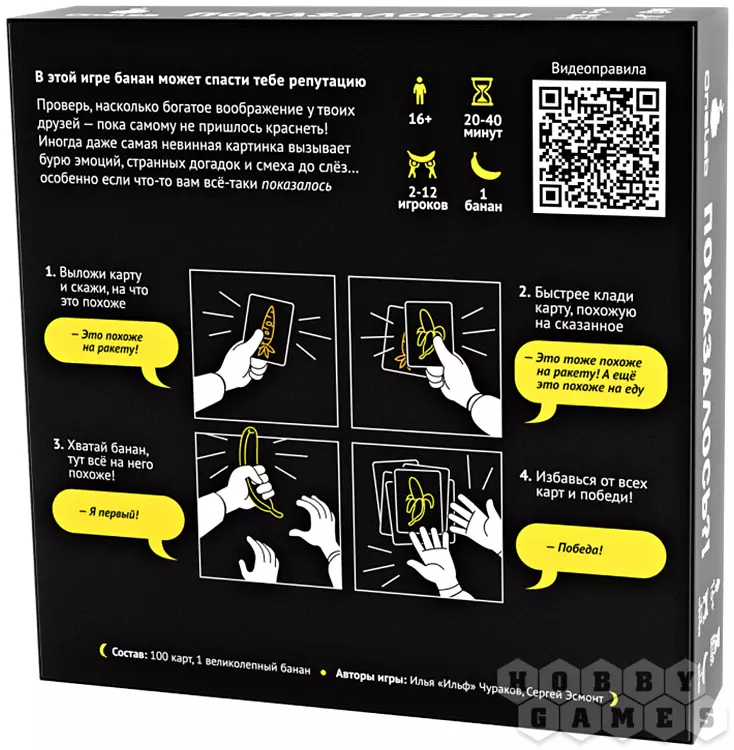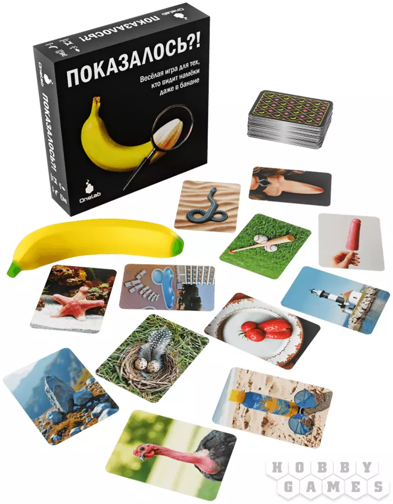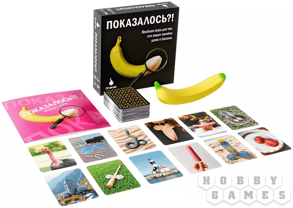 "Показалось?!" – это весёлая карточная настолка для компаний постарше, настоящий аттракцион абсурдных ассоциаций, где невинное изображение может обернуться самым неожиданным намёком. Ваша главная задача – первым избавиться от всех своих карт. Но просто скинуть их не получится: каждую карту нужно "обосновать" – озвучить смешную, неожиданную или откровенно абсурдную ассоциацию. Здесь нет правильных ответов, но будьте готовы – каждый из участников оставляет за собой право усомниться в том, что ваша реплика действительно подходит той или иной карте. Все протесты выражаются с помощью банана – главного арбитра игры, "активация" которого переводит игровой процесс в голосование, решающее судьбу спорной ассоциации. А ещё в "Показалось?!" есть особые карты-джокеры, которые могут могут перевернуть ход игры с ног на голову – например, заставить всех игроков обменяться своими картами.
