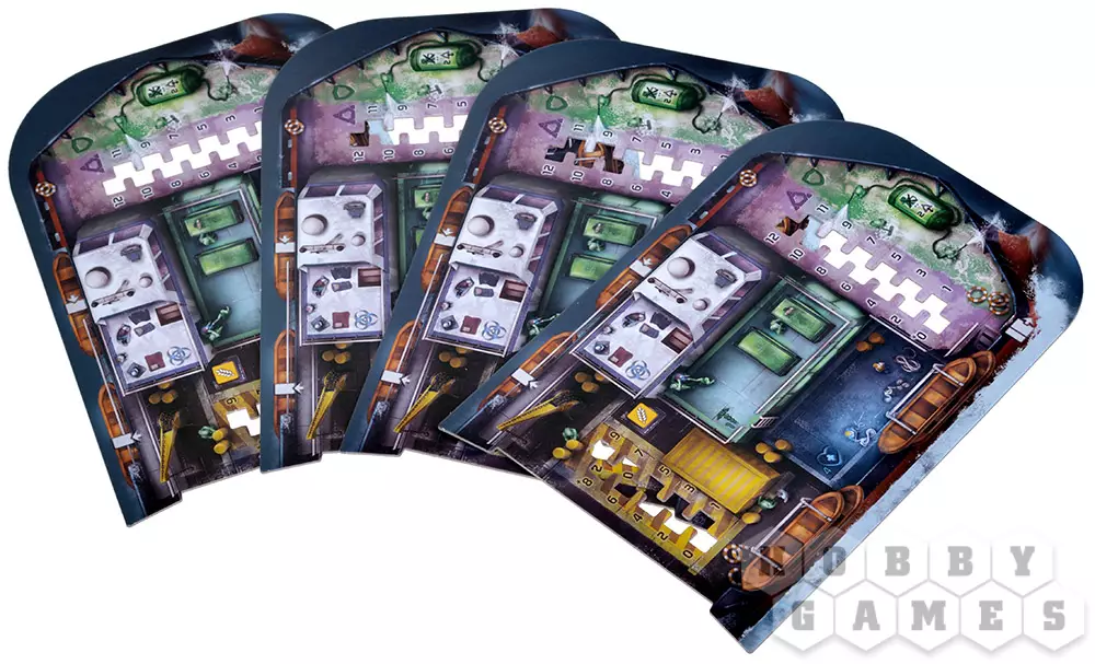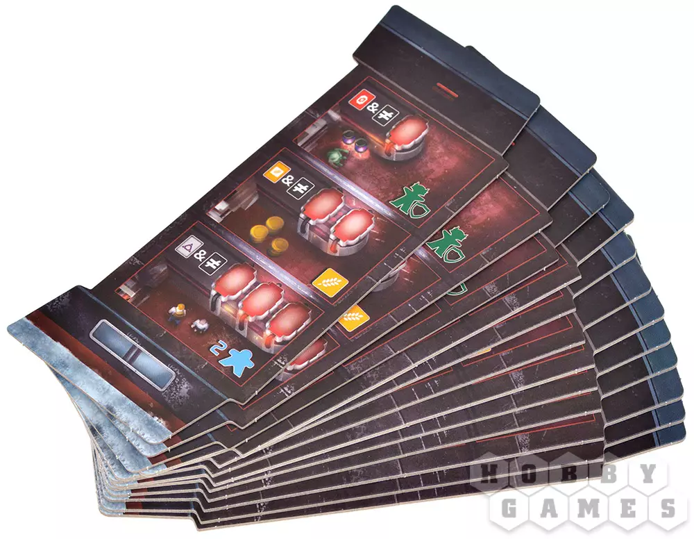 Затем наступает фаза действий, в которой игроки активируют свои карты, лежащие в зоне действий. У каждой карты своя стоимость активации, которая составляет определённое количество здоровых людей в каюте на вашем корабле. Вы можете активировать обе карты, заплатив столько людей из каюты в карантинную зону, каково суммарное значение активации обеих карт. А можете активировать только одну из двух карт, тогда перемещать людей из каюты в карантин не придётся. Во втором случае оставшаяся карта не принесёт вам никакой пользы, но зато ваши люди на корабле останутся здоровы. Также в каждом отсеке корабля есть по 3 механизма, которыми вы можете воспользоваться после розыгрыша карт только если они включены. Они приносят дополнительные ресурсы по тем же правилам, что и разыгранные карты.