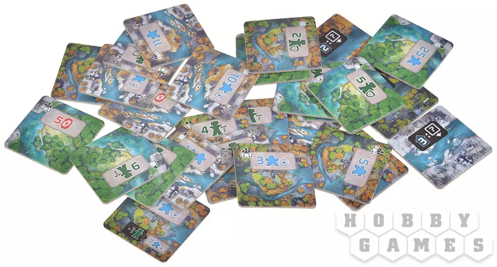 Размер карт: 63x88 мм (рекомендуются протекторы из данного раздела, 112 шт.)