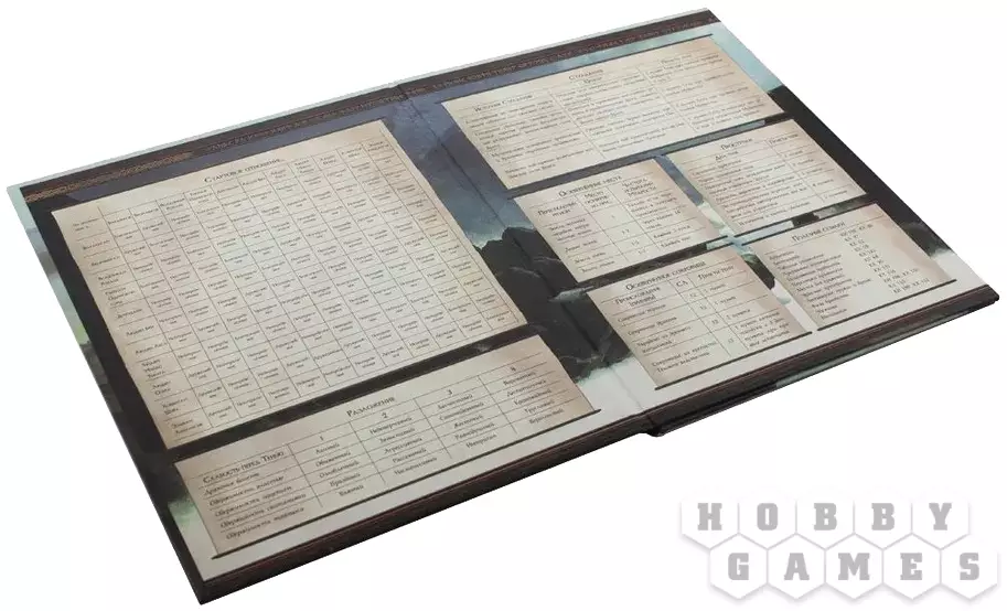 Ширма – один из самых полезных инструментов ведущего, поскольку позволяет уточнить всю необходимую для игры информацию, не отвлекаясь от самого процесса. У этой ширмы целых четыре секции, которые содержат в себе всё самое важное: обращённые в таблицу данные начала и окончания пути, различные полезные ссылки, пересказ правил (куда без этого! даже мастер не всесилен и может что-то забыть), отношение в начале игре, а также другие подсказки – например, о разложении, проступках, осквернённых сокровищах и многом другом. А на изнаночной её стороне расположился поразительный образ Озёрного города. Благодаря своему размаху, этот аксессуар позволяет скрыть от любопытных игроков материалы, которыми пользуется ведущий, и не только сохранить атмосферу неожиданности и таинственности, но и более основательно погрузиться в атмосферу игры – ведь когда нет возможности подглядеть, фокус внимания неизбежно падает на собственные решения и взаимодействие с союзниками. В общем, эта ширма ведущего будет отличным вложением в становление частью мира НРИ "