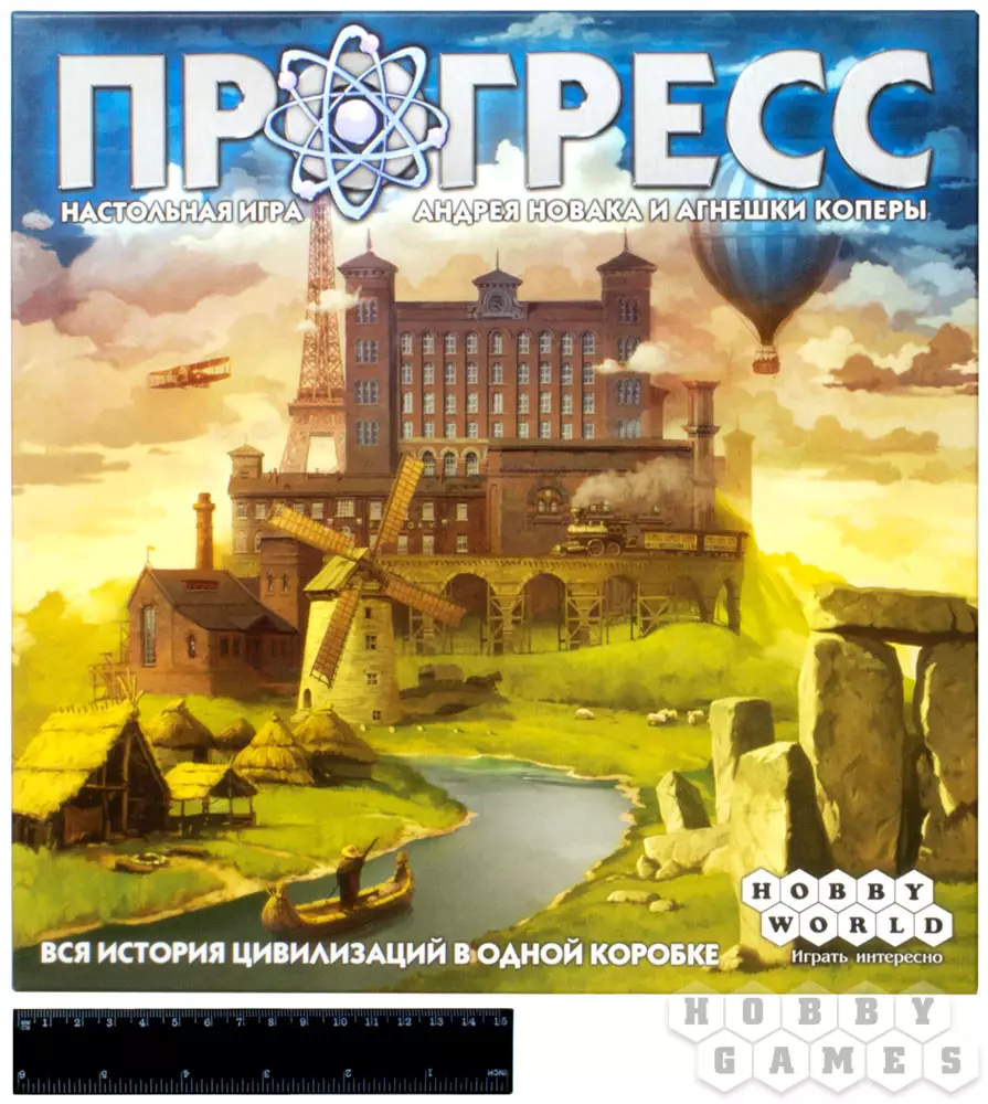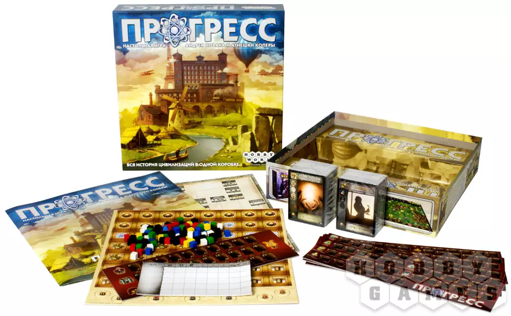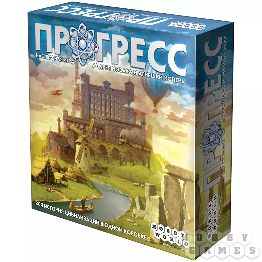 "Прогресс" это карточная игра, которая рассказывает о развитии технологий на протяжении практически всей истории человечества. Игрокам, соответственно, предстоит построить самую технологически развитую цивилизацию, при этом конкурируя друг с другом. Вам предстоит пройти путь от первых творений человечества через античность, средние века и эпоху Возрождения до первых искр промышленной революции (а с дополнением даже немного дальше)! При этом всего в игре три различных ключевых области прогресса – это наука, техника и искусство. Грамотно развивая различные технологии и правильно выбирая стратегию, вы приведёте свою нацию к победе!