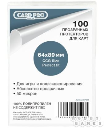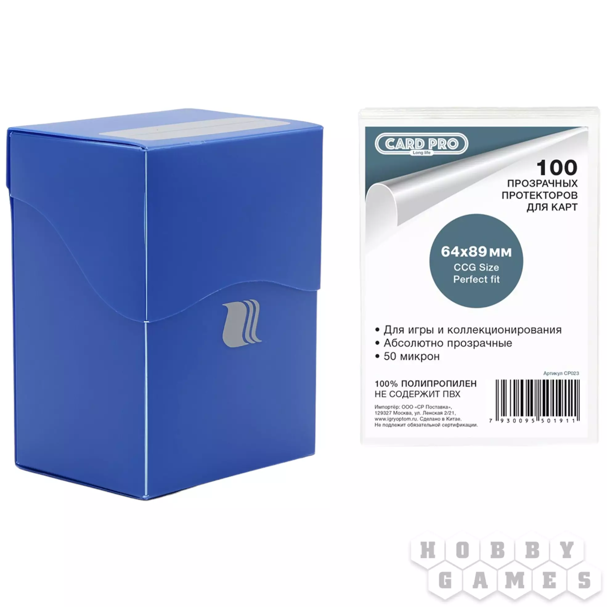 В этом комплкете вы найдёте не только прозрачные протекторы размером 64x89 мм и плотностью 50 микрон, но и не менее полезный атрибут для хранения карт – бокс. Это прочная коробочка из полипропилена, предназначенная для карт размера Standard. Она вмещает до 100 карт в протекторах или до 80 карт в двойных протекторах.