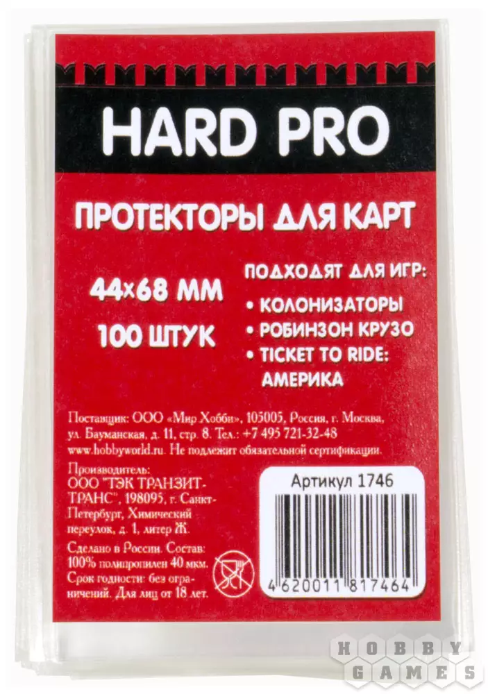 Протекторы HardPro (100 шт., для карт 44x68 мм): стандарт прозрачные