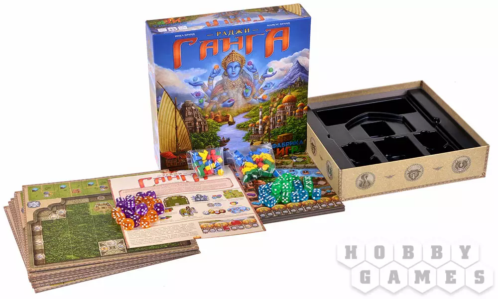Именно в эту эпоху погружает настольная игра "Раджи Ганга". Игроки примут на себя роль уважаемых правителей своих земель – раджей и рани. Но это уважение невозможно без должной работы, поэтому задачей игроков становится развитие своих территорий из личных имений в потрясающие богатые провинции. Игра длится на протяжении нескольких раундов, в течение которых игроки будут размещать своих рабочих на различные участки игрового поля. Хотите получить больше монет? Отправьте рабочего торговать на рынок. Нужна поддержка? Загляните во дворец Великих Моголов. Получили всё необходимое для облагораживания своей провинции? Пусть рабочие отправляются в карьер и начинают строительство храма.